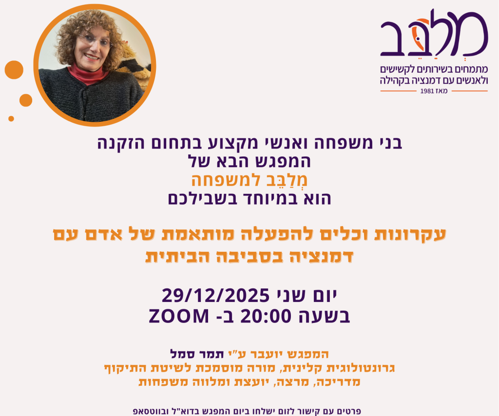 "הפעלה מותאמת של אדם עם דמנציה" – מפגש מלבב למשפחה עם תמר סמל 29/12/2025